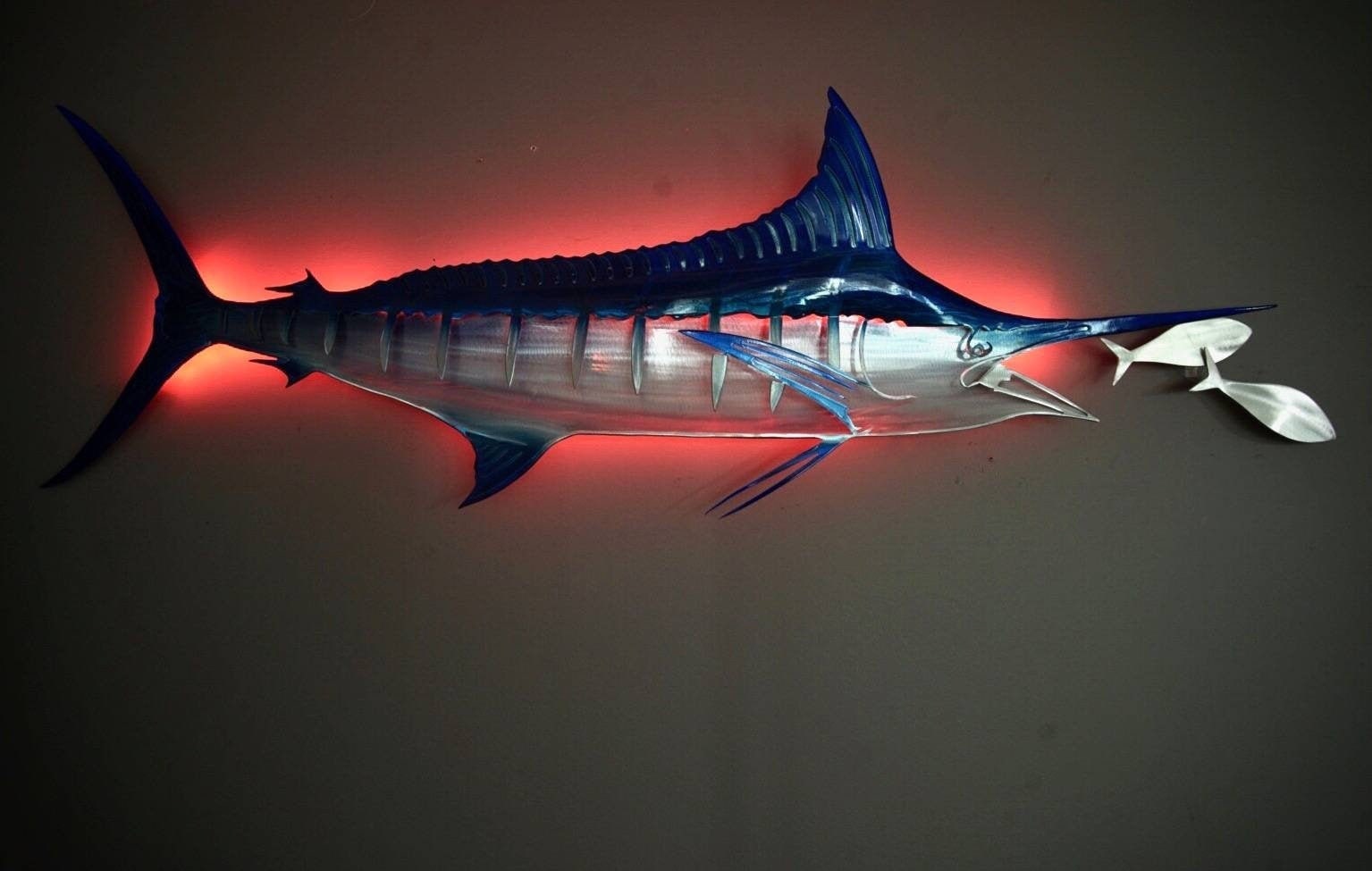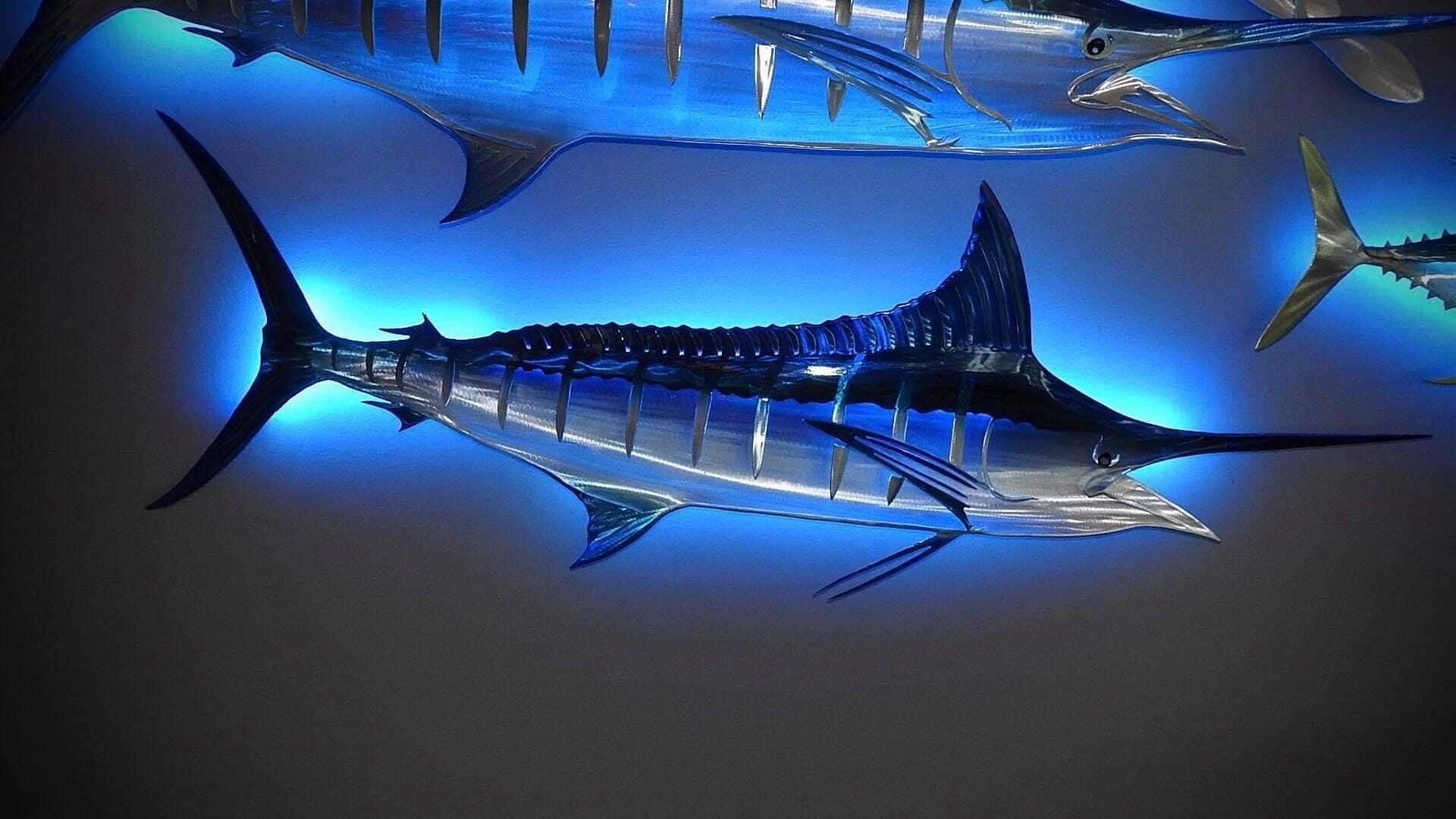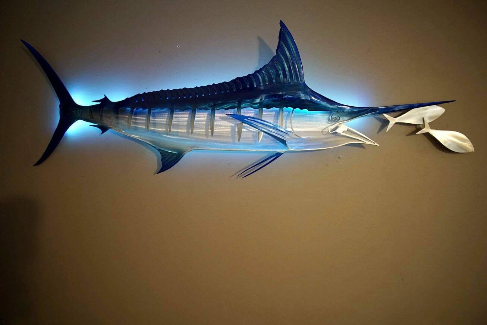 Exo-Stencil Series Striped Marlin: Premium Original Handmade Metal Wall Art Sculpture, Lifelike Depiction of Striped Marlin Fish