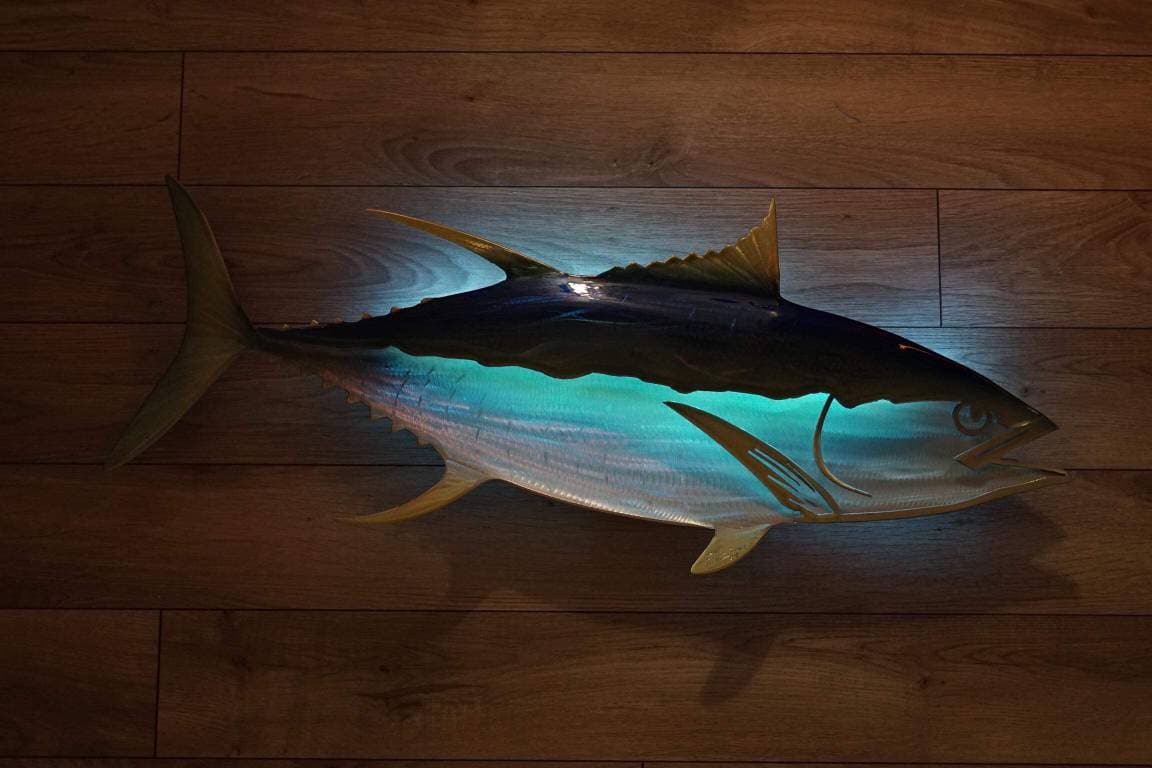 Exo-Stencil Series Tuna: Premium Original Handmade Metal Wall Art Sculpture, Lifelike Depiction of Tuna Fish for Fishing Enthusiasts