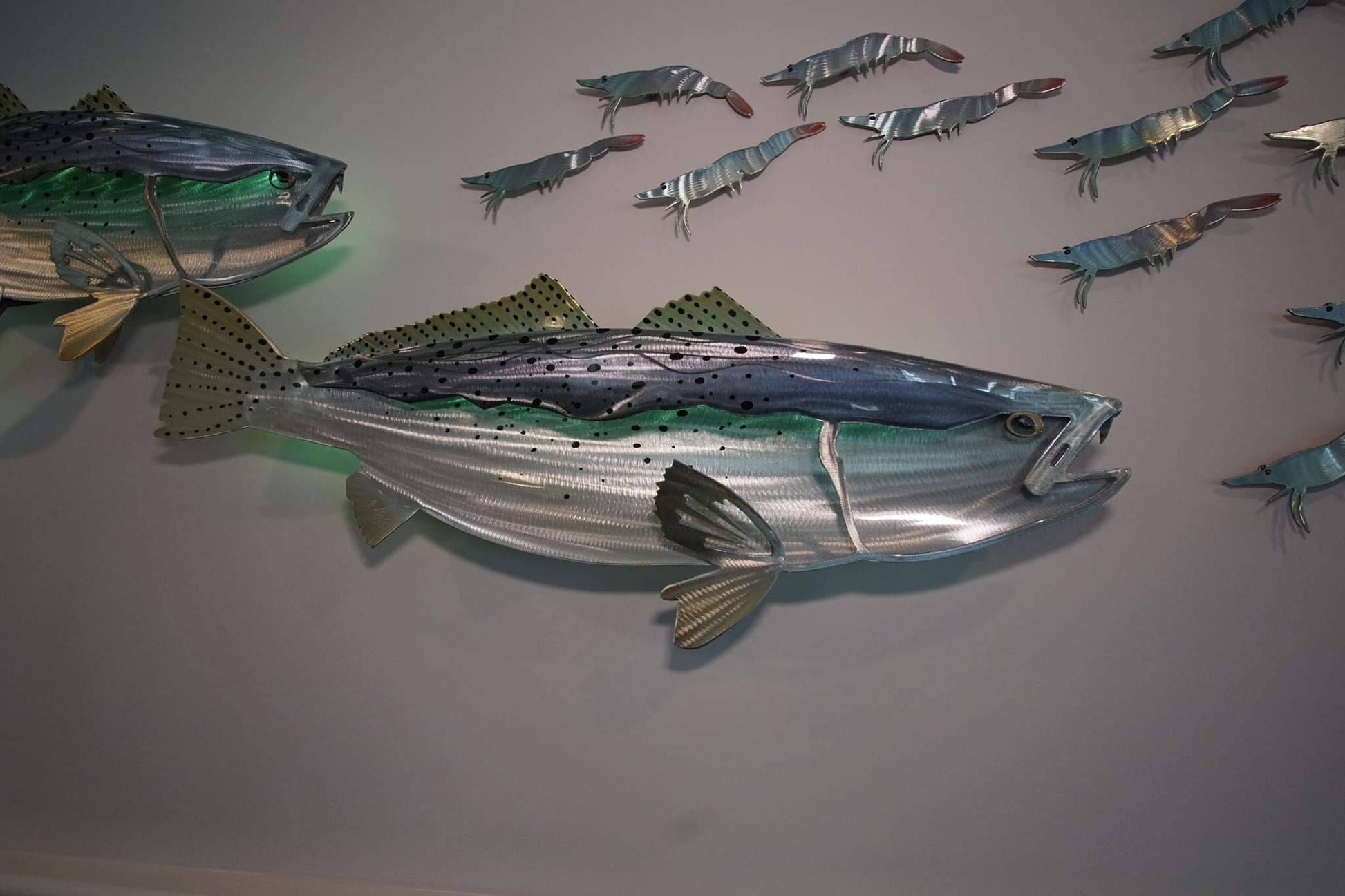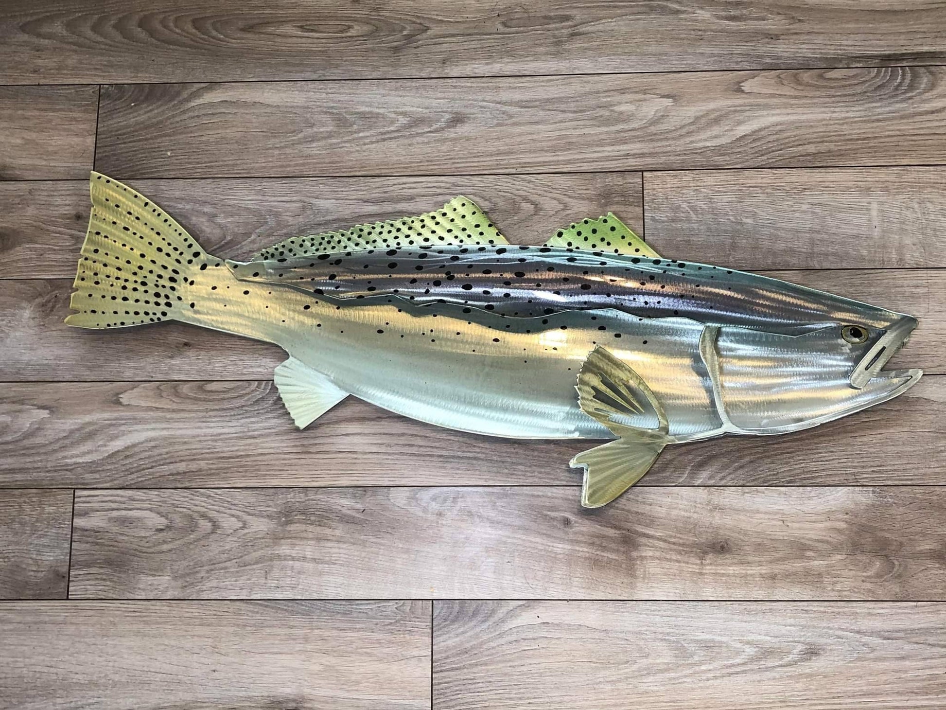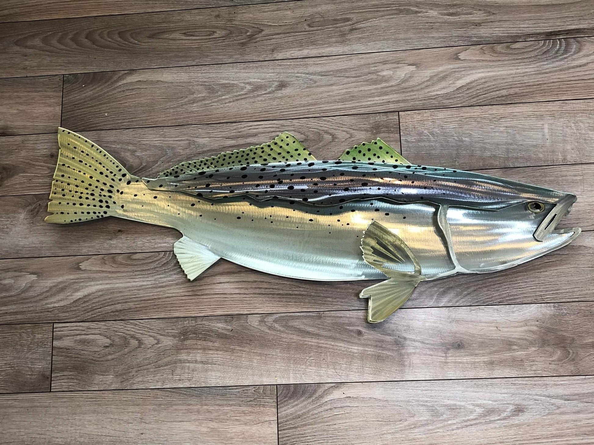 Exo Stencil Speckled Trout: Original Handmade Metal Wall Art, Lifelike Sculpture for Fishing Enthusiasts