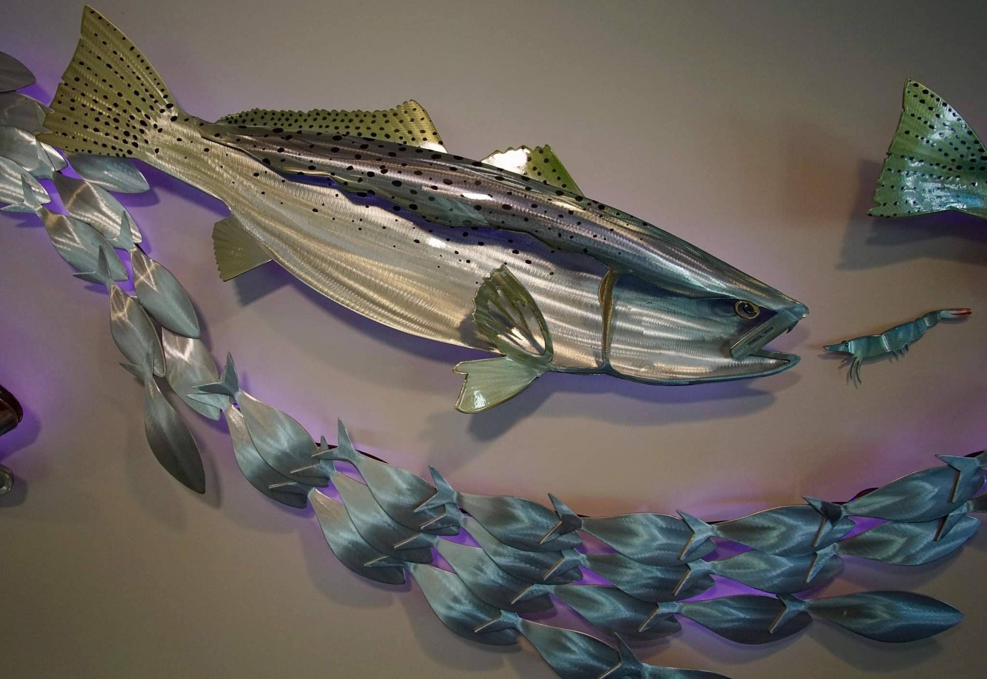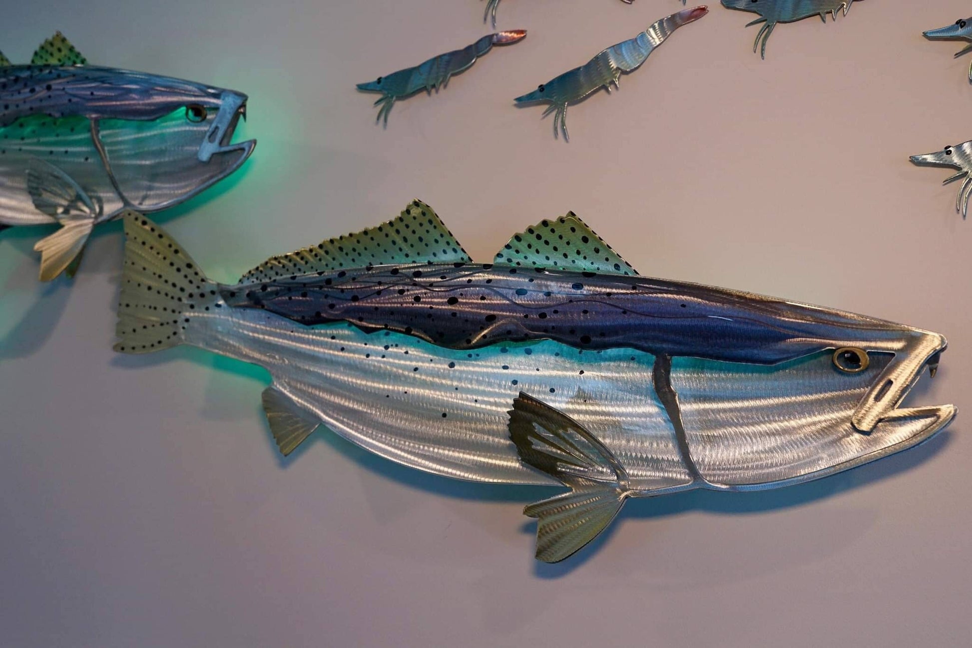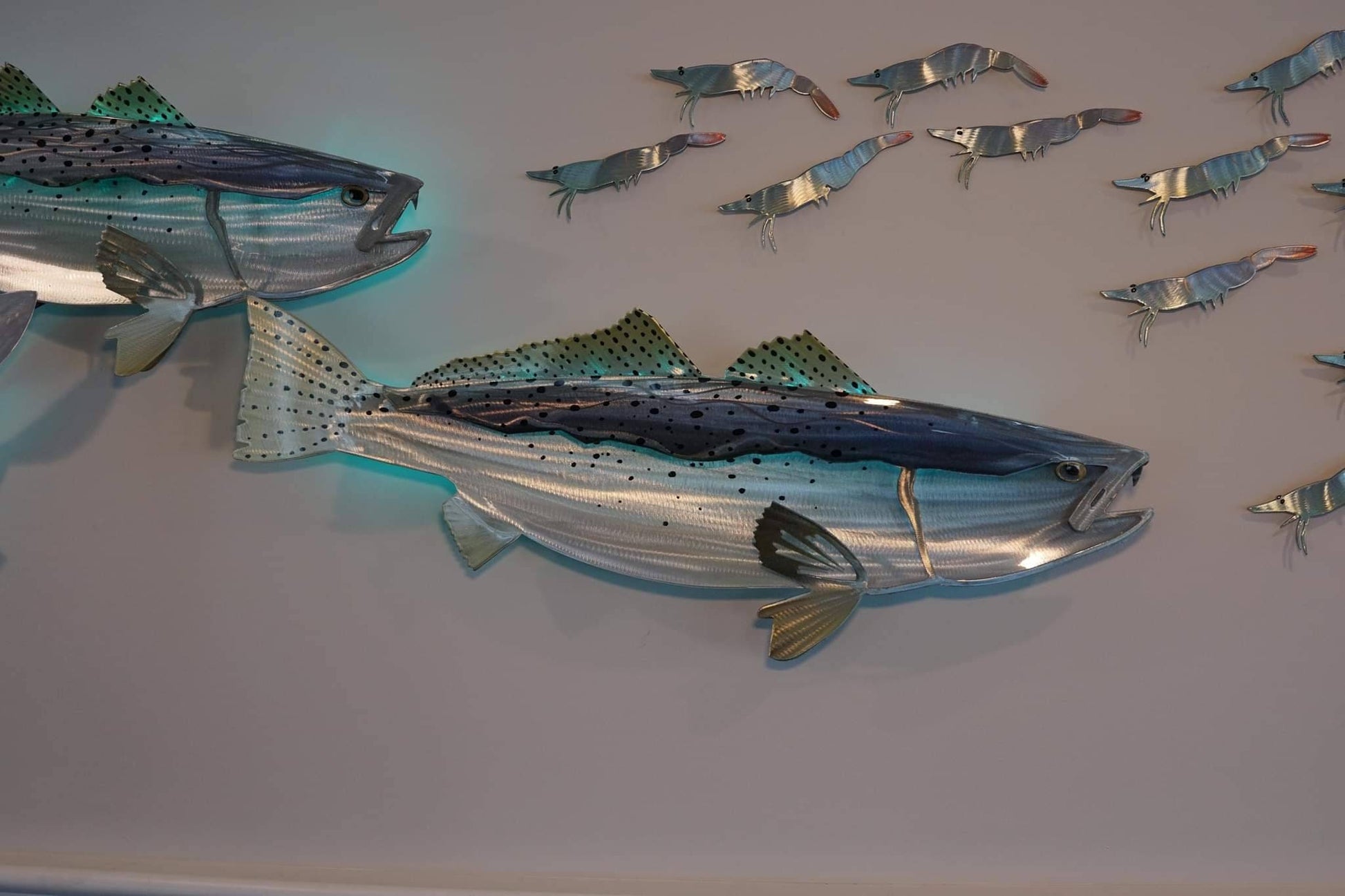 Exo Stencil Speckled Trout: Original Handmade Metal Wall Art, Lifelike Sculpture for Fishing Enthusiasts