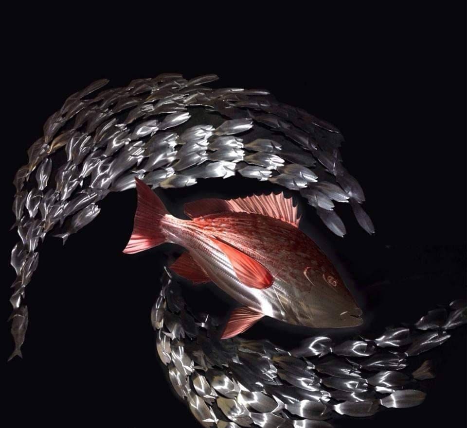 Red Snapper: Oceanic Elegance in Handcrafted Metal Wall Art