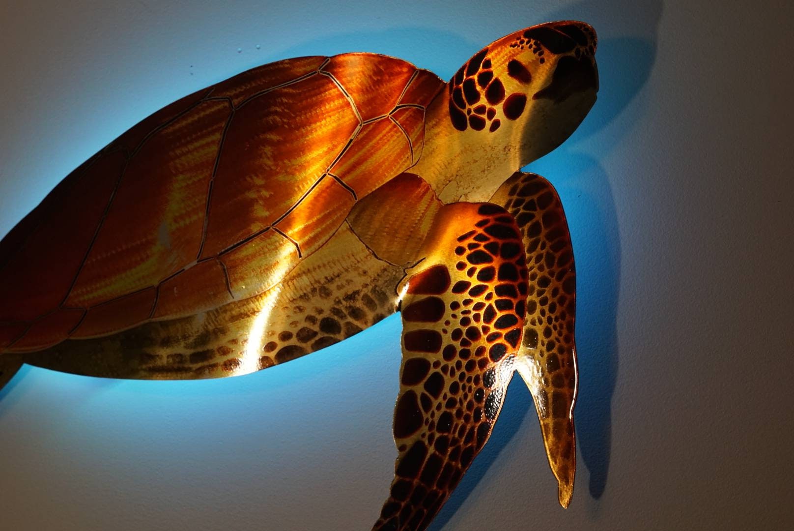 Sea Turtle Reproduction Lighted Metal Wall Art