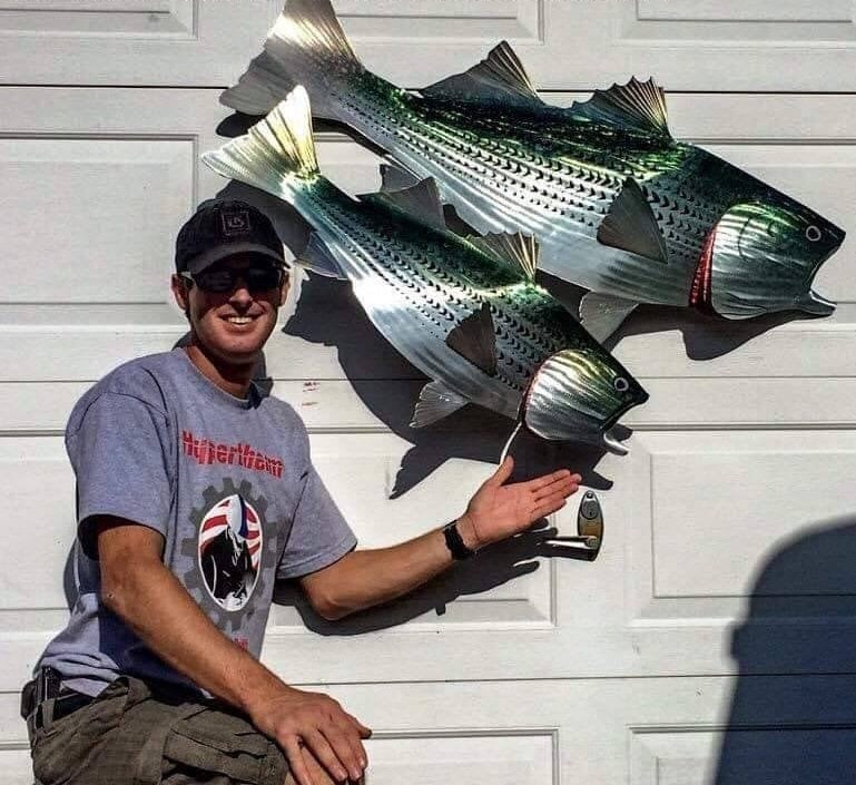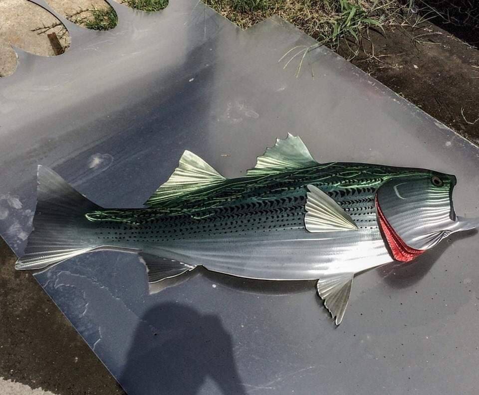 Sean Tuttle's Exquisite Handmade Metal Wall Art: Striped Bass, a Stunning Depiction of the Iconic Atlantic Fish
