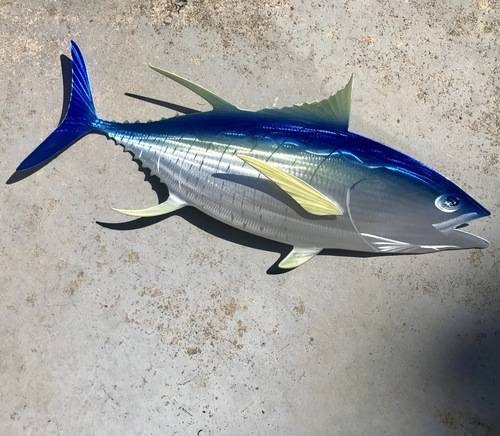 Sean Tuttle's Yellowfin Tuna sculpture stands out as one of his most sought-after pieces, capturing the essence of this majestic predator of the sea. Crafted with meticulous attention to detail, the lifelike features and vibrant coloration of the Yellowfin Tuna add a captivating focal point to any home or business decor. The sculpture's dynamic pose and exquisite craftsmanship evoke the thrill of deep-sea fishing adventures, making it a perfect addition for ocean enthusiasts, seafood aficionados, and art connoisseurs alike.
