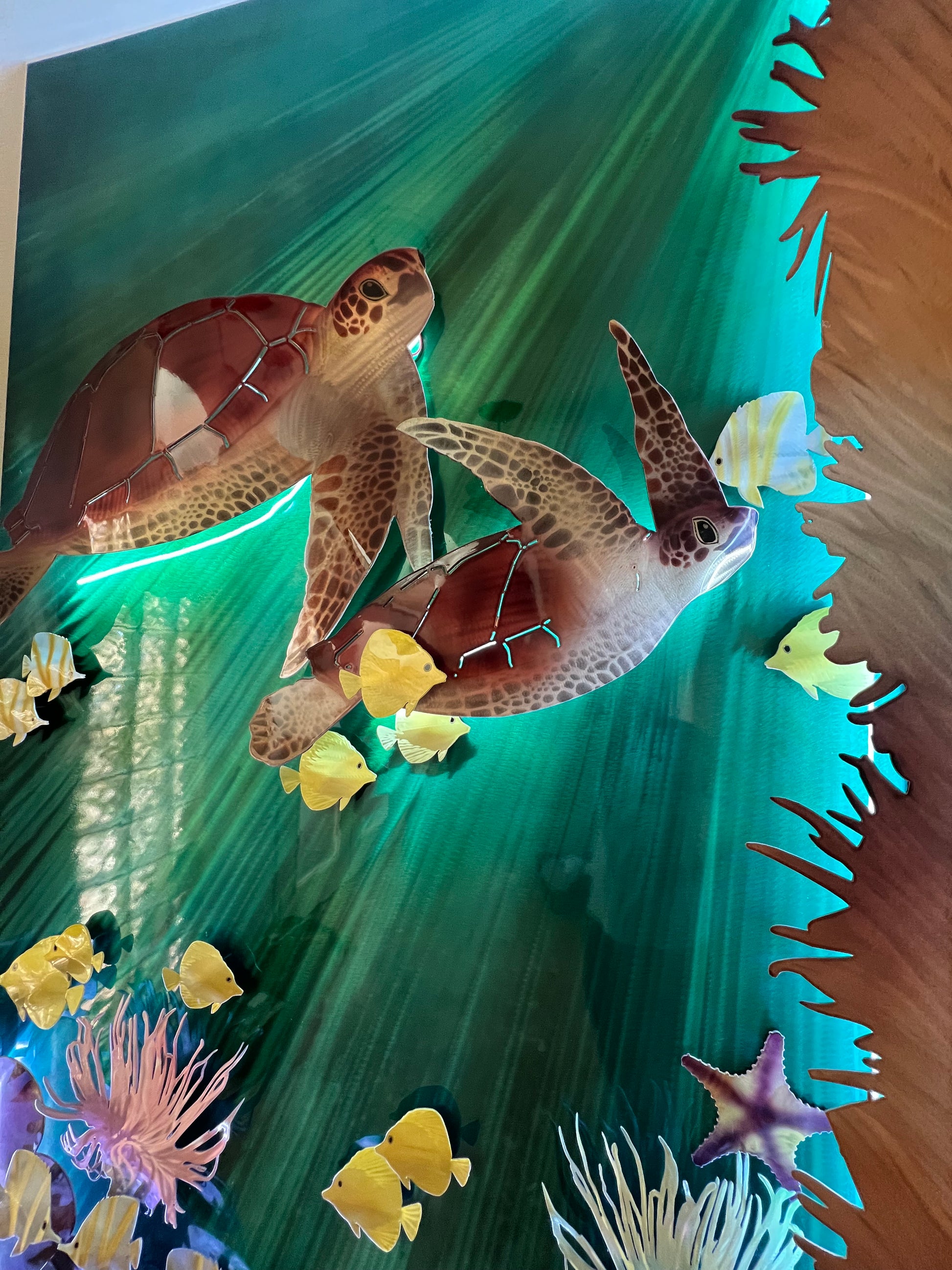 Tortuga Reef Tank Wall Panel – Lighted Sea Turtle, Coral & Octopus Ocean Art – Custom Coastal Aquarium Decor for Homes & Businesses