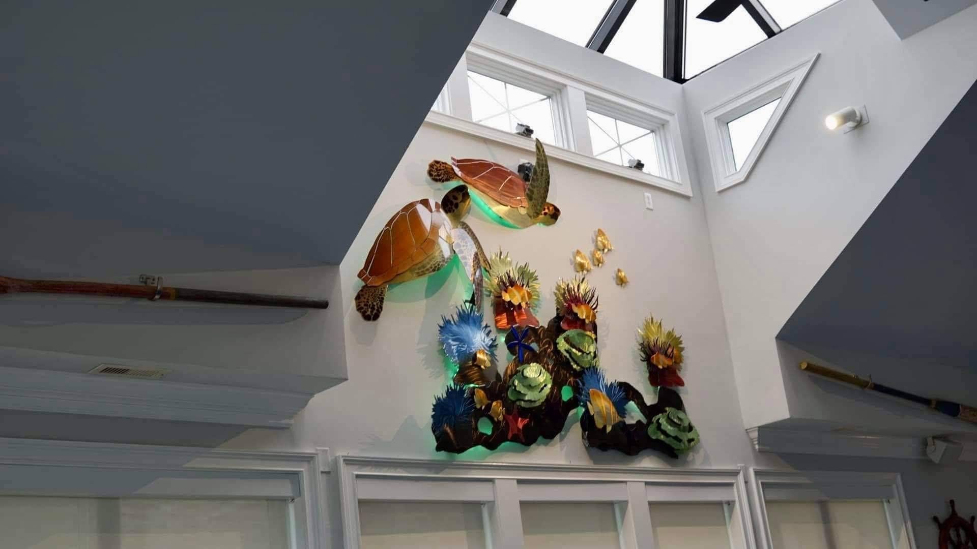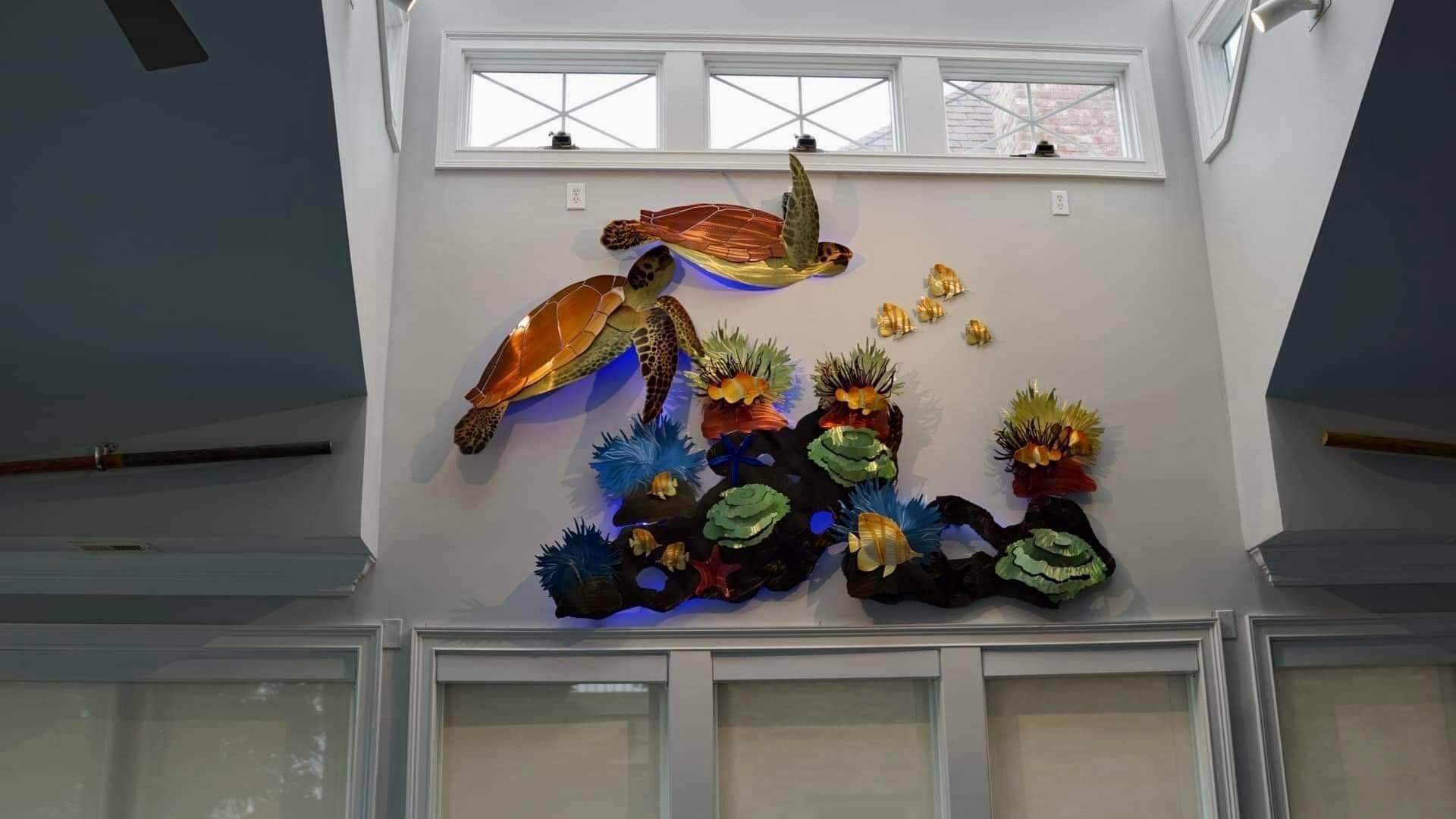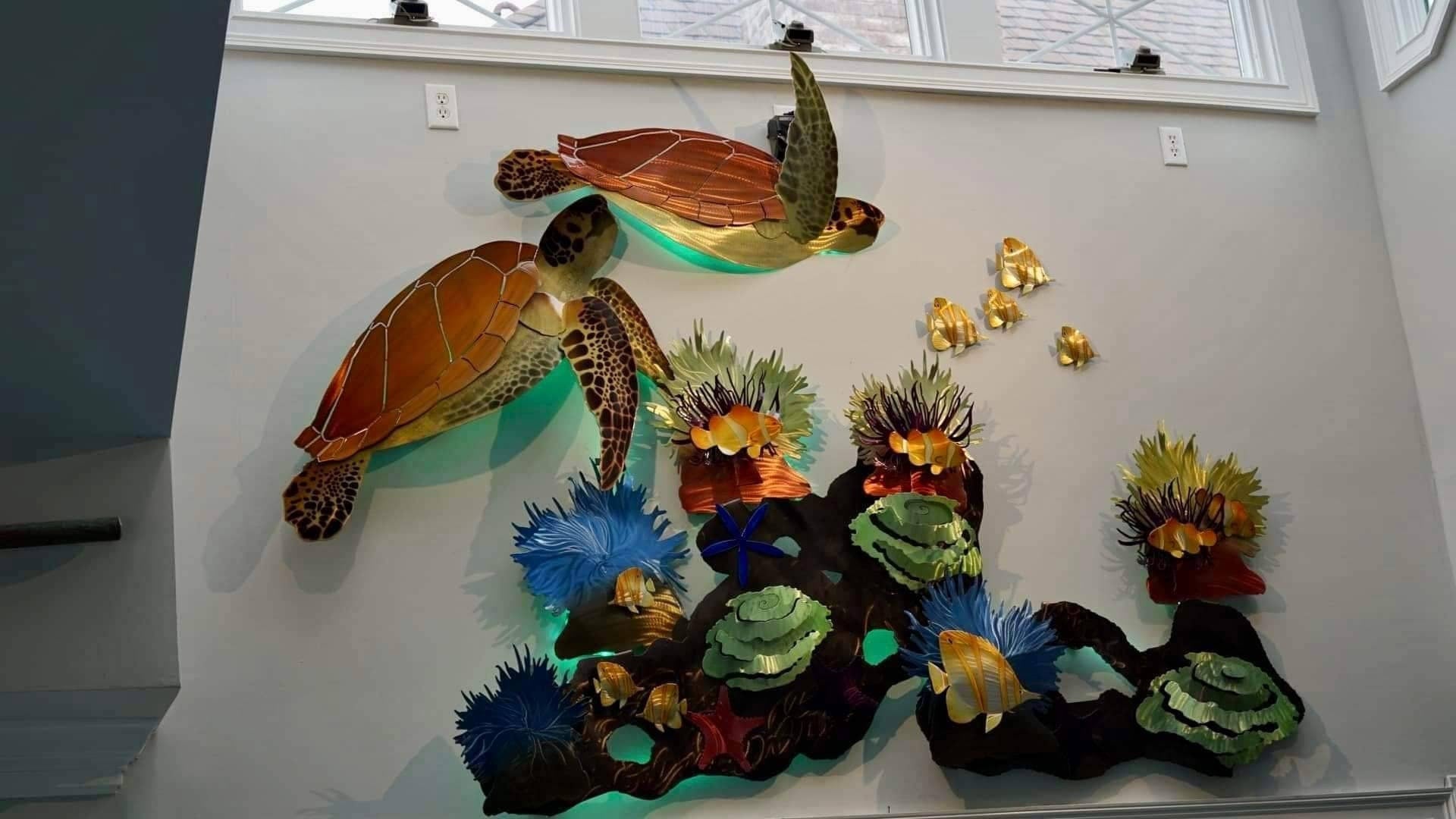 Customization options are available to tailor the size of the sculpture to fit your specific wall space perfectly. Contact us to explore how Sean Tuttle's Handmade Tortuga Reef can enhance your home or business decor with its enchanting marine beauty.